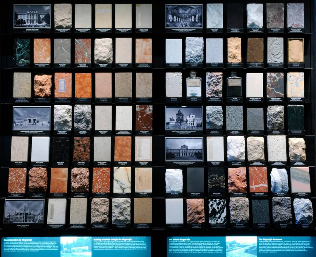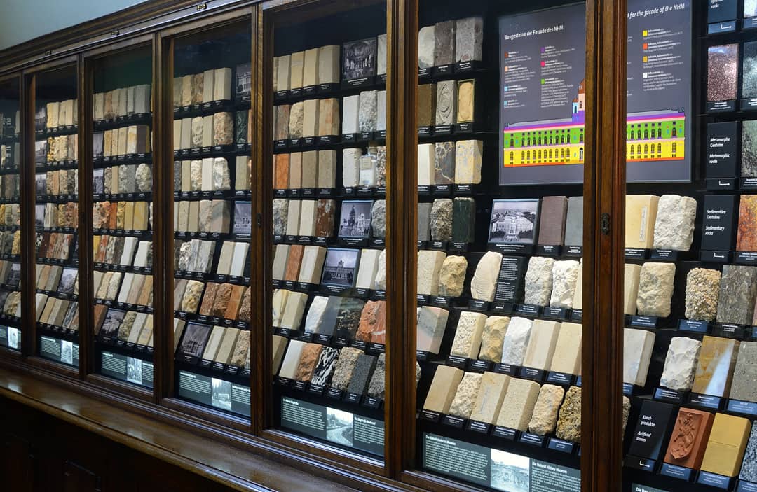 Historical value: Initiated by F. Karrer (1825-1903) but the collection contains specimens from the much older Ambras collection (16th century) up to the stones currently used for decoration of railway stations in Vienna, the collection has documented centuries and continues doing so. Cultural and educational value: The collection is seen as stony database of historical buildings, but also as tool for introducing the general public to geology, as the specimens are classified according to their geological origin, subdivided into magmatic, metamorphic, and sedimentary rocks. Representative samples are on exhibition in Hall 1 of the NHM Vienna; this exhibition was fully renovated in 2015 for the 100th years anniversary of the opening of the famous Ringstraße in the center of Vienna. Dedicated guided tours are regularly offered.